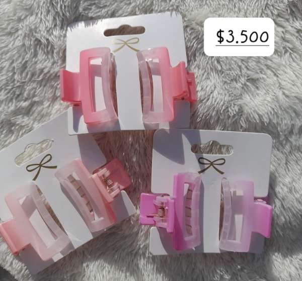 Set de dos broches para pelo de acrílico con forma rectangular.