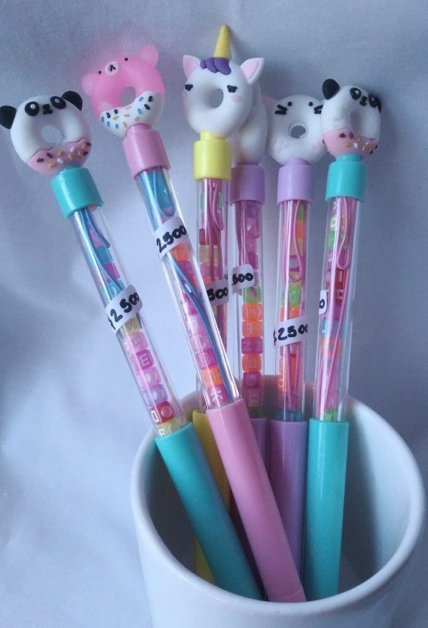 Bolígrafo punta aguja dounuts. Trae en su interior para hacer una biju personalizada. TINTA AZUL.